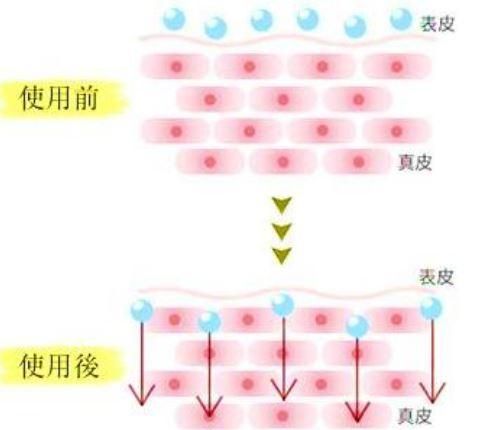 真皮:細胞接着分子を一時的に切断し皮膚の吸収率を飛躍的に高める